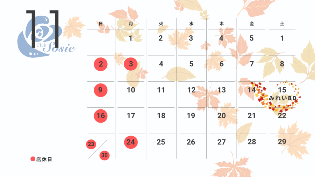 11月の営業日及び店休日は以下の通りです!